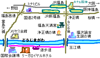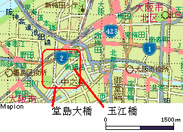 現場付近には適当な駐車場がありません。 路駐で一番安全と思われるのは、キングマンション堂島川の北側道路の路肩でしょうが決してお奨めできません。 どうせ有料に入れるならホテル阪神かリーガロイヤルホテル( 旧 ロイヤルホテル )の 地下駐へ入れましょう。 ついでにレストランをリザーブしておけば完璧です。 お部屋のリザーブ? それはおまかせします。