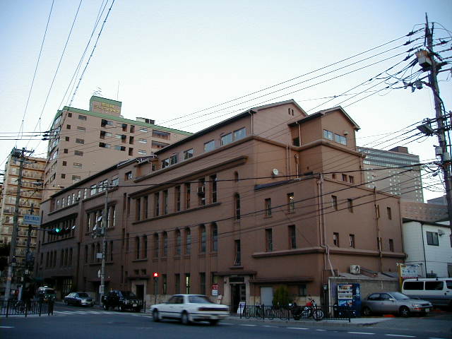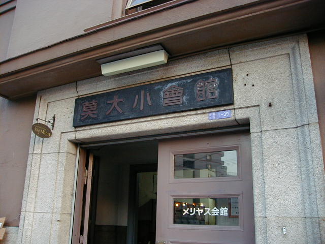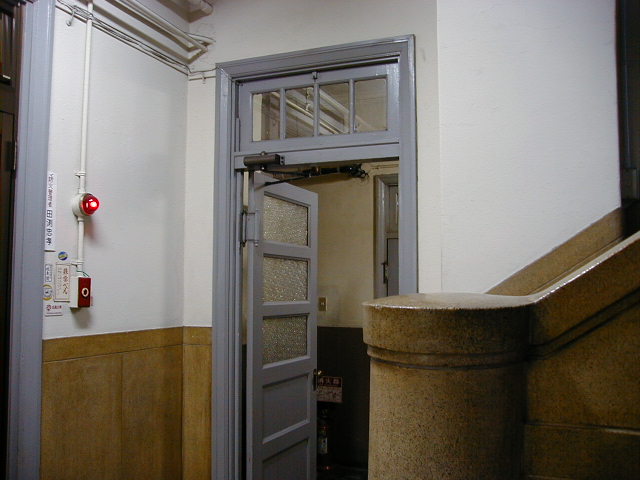 「莫大小会館」と書いてあって、さすがに読めませんでした。 メリヤスです。 伸縮自在という意味だそうです。 この建物は隆盛時のメリヤス組合が昭和 4 年( 1929 )に建てたものです。 階段や窓などの作りが戦前のままです。 屋上は後に増築されているようです。 戦前は福島区といえば「パーツ屋とメリヤス屋の街」と言われるほどメリヤス工場がたくさんありました。 繊維工場としては、すぐ目の前の下福島公園は日本紡績の跡地で、ニチボー(日紡)グランドと言っていました。 子供の頃は戦車もあったのですが…。(たぶん記憶違い)