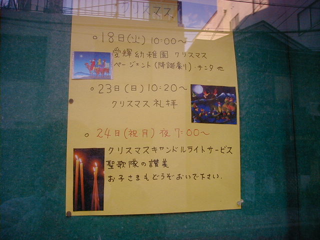 | 礼拝ポイント | クリスマスが楽しい。 クリスマスミサ(礼拝)以外に併設している幼稚園の子供達による行事などがあるようです。 |