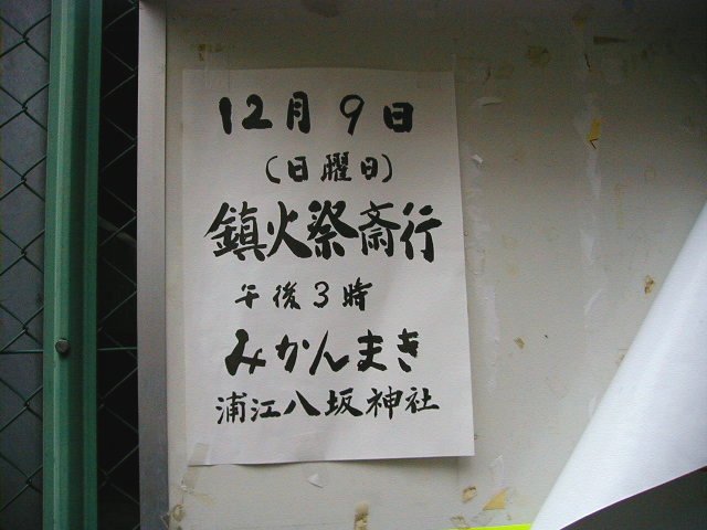 海老江も空襲は激しかったのですが、神社は大きな被害はありませんでした。 福島天満宮も空襲ではそこだけが焼け残ったそうです。 焼夷弾が落とされなかった訳ではありません。 不思議やなぁ、と地元の人は言いますが、さすがに阪神淡路大震災では大きな被害がありました。 現在も修復寄進受付中です。 それから一般には八坂神社と書きますが、社殿の中に掛けられている看板(扁額)には、「八阪神社」と書かれています。 近所の八阪中学も「阪」です。 どちらが正しいのか分かりません。 大仁は八阪神社ですが。