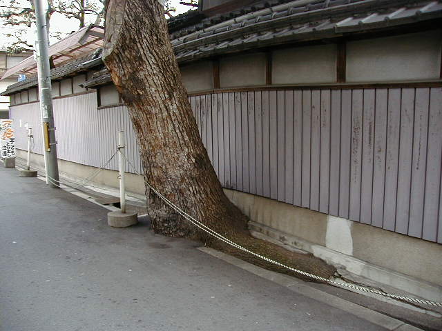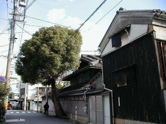 海老江にある古い家では敷地の下から楠(クスノキ)が生えています。 樹齢 200 年ぐらいだそうです。 ご神木らしく切れない。 というより 200 年も前から、ここの家の人は大変だったでしょうね。 木が枯れる数百年のちまで、この木を守っていただけることを願うばかりです。