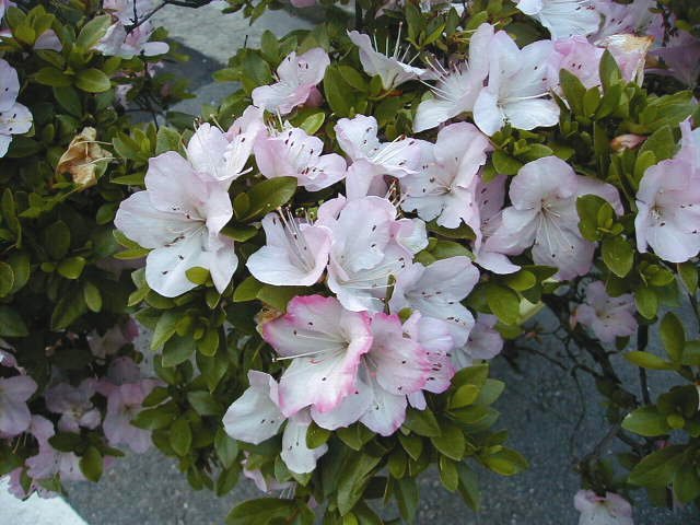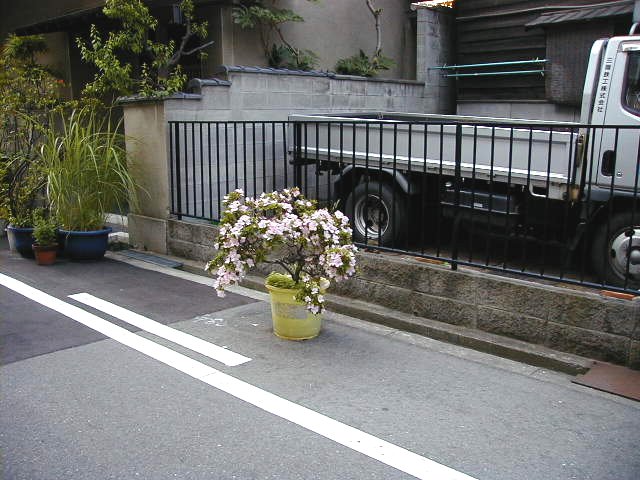 駐車場前の道路の歩道帯に置かれたサツキかツツジ。 プラスチックの漬物樽に植えられて ポツンと置かれています。 しかも見事な花が咲いています。 区内の裏通りでは歩道帯は「庭」ですが、それにしても…。 これは所有者など調べる気にはなりません。 街角の花として、そっとしておきたい。