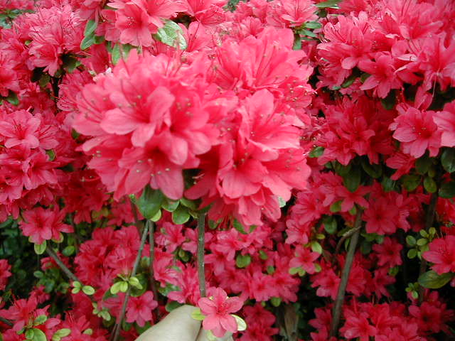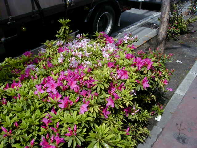 ええー、10メートルに達するですか。 そもそもこの事実に驚きました。 私のツツジのイメージは「せいぜい腰のあたり」です。 園芸用や植栽になったツツジしか見たことがありません。 常緑高木というのは、一年中 葉が付いていることを指していると思いますが、落葉性のものがあるようです。 一般に「ツツジ」と言われるのは落葉性、と書いてあるサイトもあります。 ということは、街路樹で使われるのは常緑なので「サツキ」なのか。