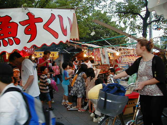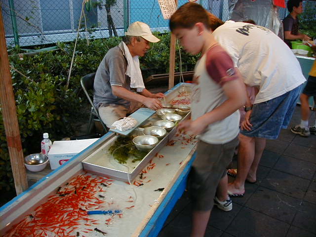 説明不要の「金魚すくい」。 何も書きません。 ちなみに団地などの子供たちは家で飼うために買って帰ることが多いそうです。 出目金は弱いので人気薄。