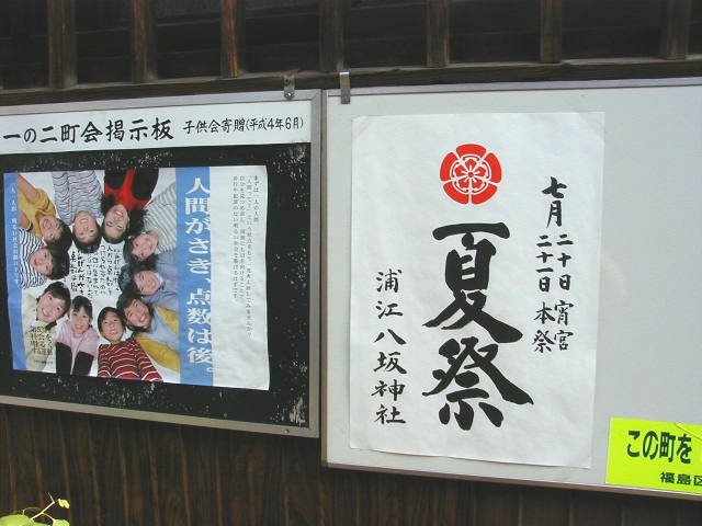 浦江 八阪神社ですが、夜店の兄ちゃんに聞いたところハッキリ「福島区でんがな」と言っていました(笑) ちなみに現在の行政区は北区です。