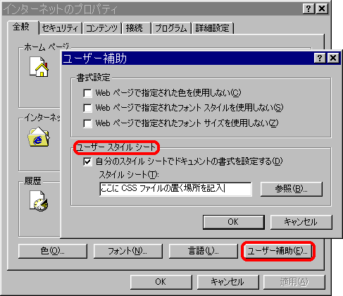 IE のインターネットのプロパティに、こんな名前の設定があります。 ネーミングが良くないので、あまり使ってゐる人はゐないと思ひますが大變役に立ちます。 閱覽者が見易いやうに變へることができるので、先づ手始めに文字サイズを固定してゐるサイトをサイズ變更できるやうにしてみませう。 これで本人が格好良いと思ってゐるページも臺無しです、とほほ。
