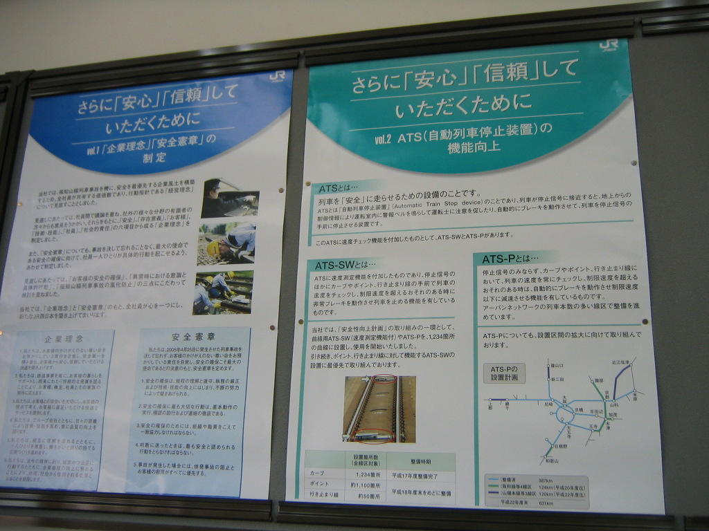 - 揭出ポスターは當然ですが JR 西日本のもの。 2005 年 4 月に起きた福知山線脫線事故を受けた ATS-P 設置計畫路線圖に大阪環狀線や大阪近郊區間が出てゐます。