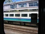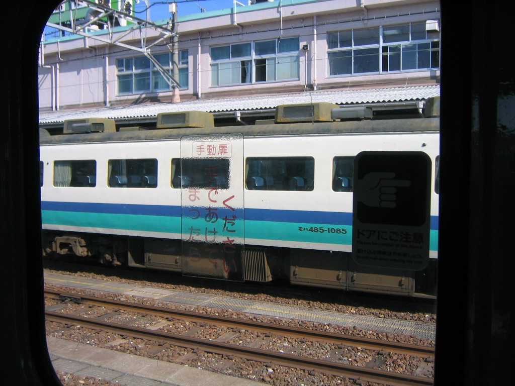 - 大絲線ホームに停車中の南小谷行(キハ 52-125 )車内から 1 番線に入った特急 北越 新潟行(モハ 485-1085)を見る。 この頃の北陸本線は「特急街道」と呼ばれてゐました。 その橫に一輛の氣動車が停まってゐる新舊のコントラストは絲魚川ならではでした。 2006 年 5 月 15 日撮影。