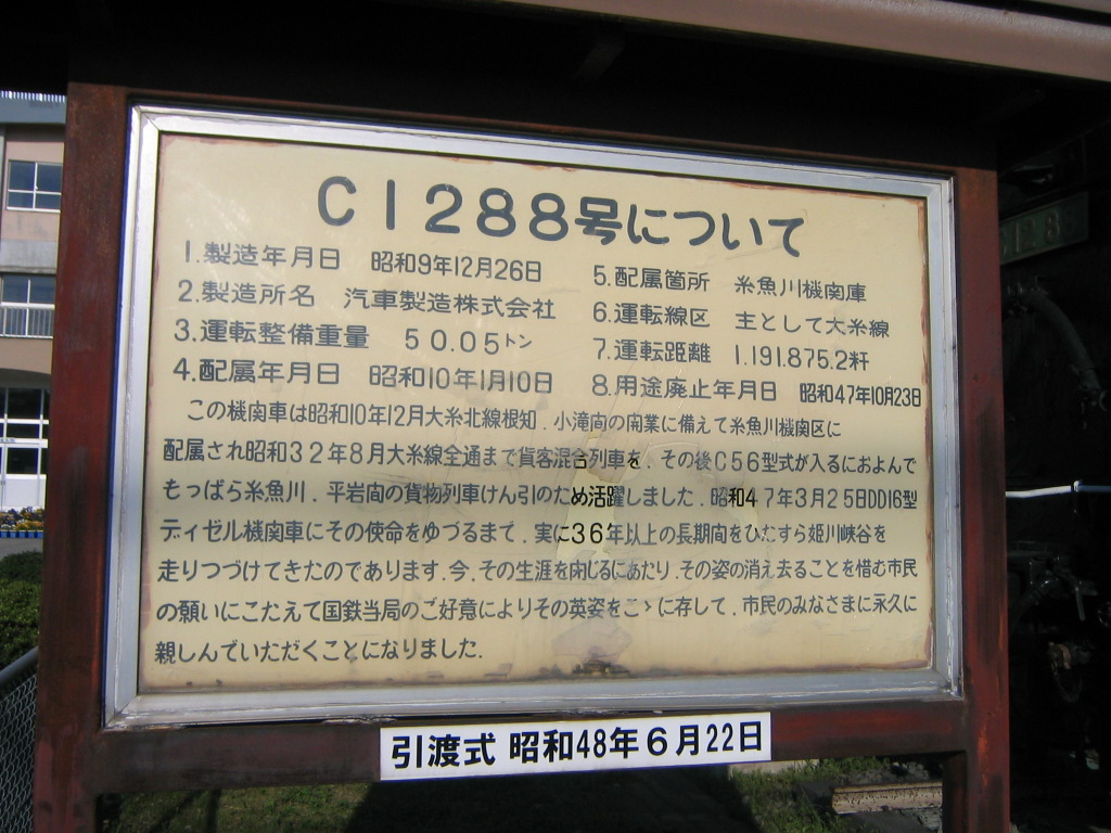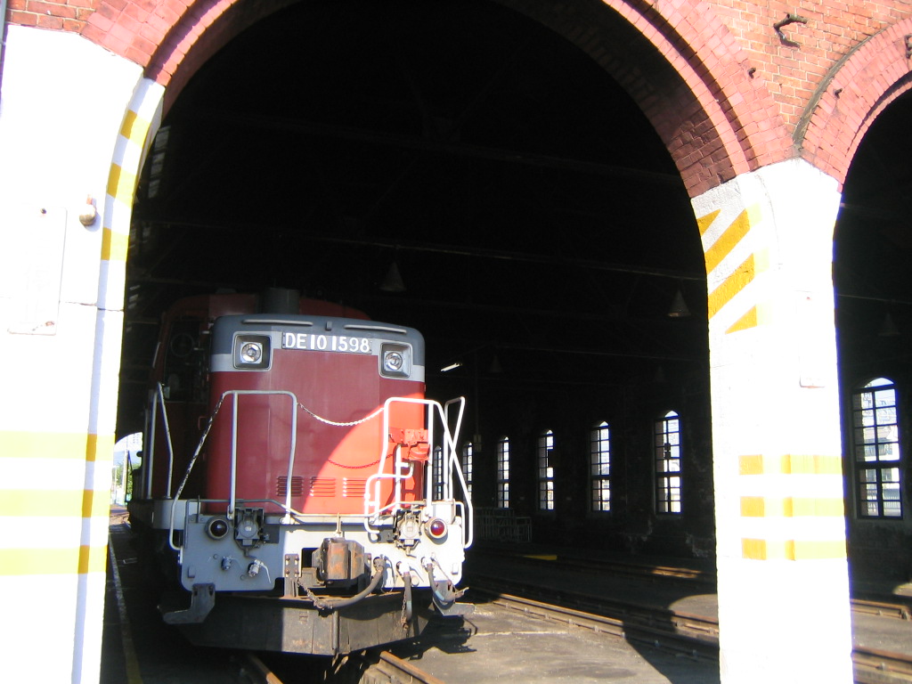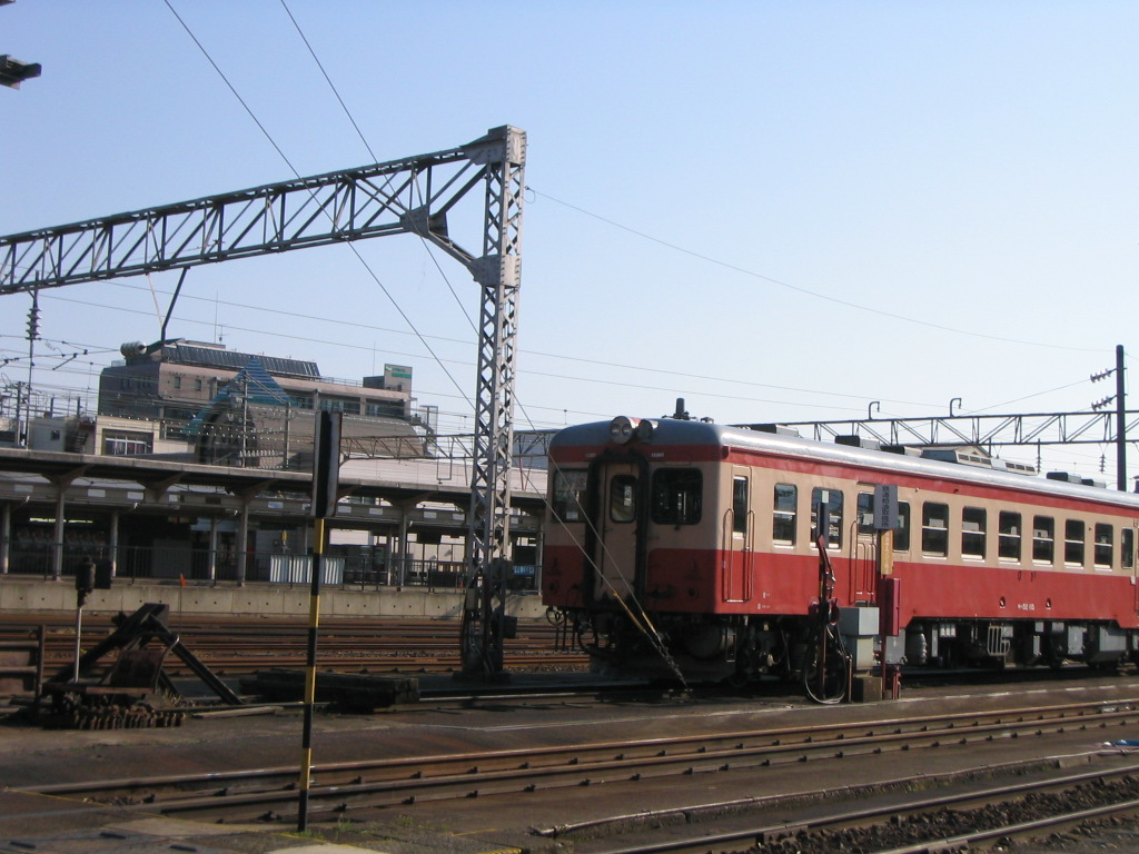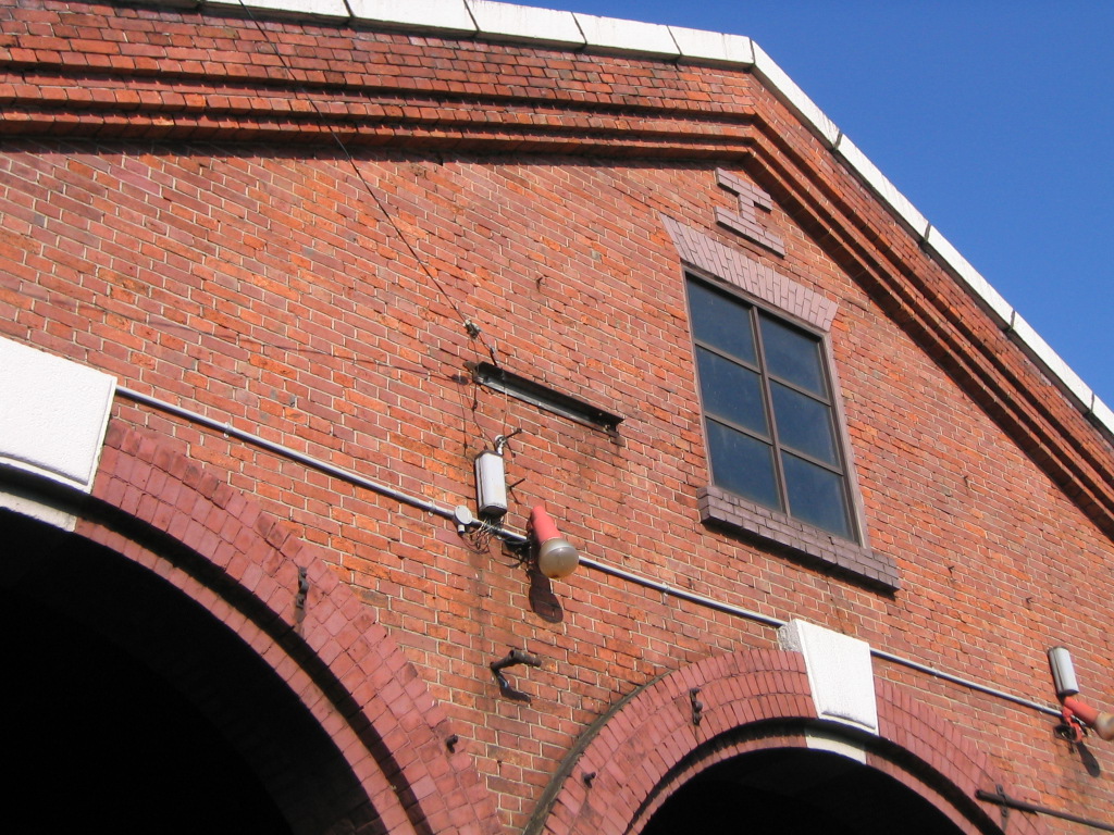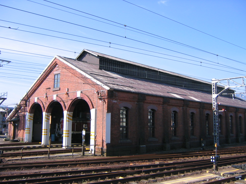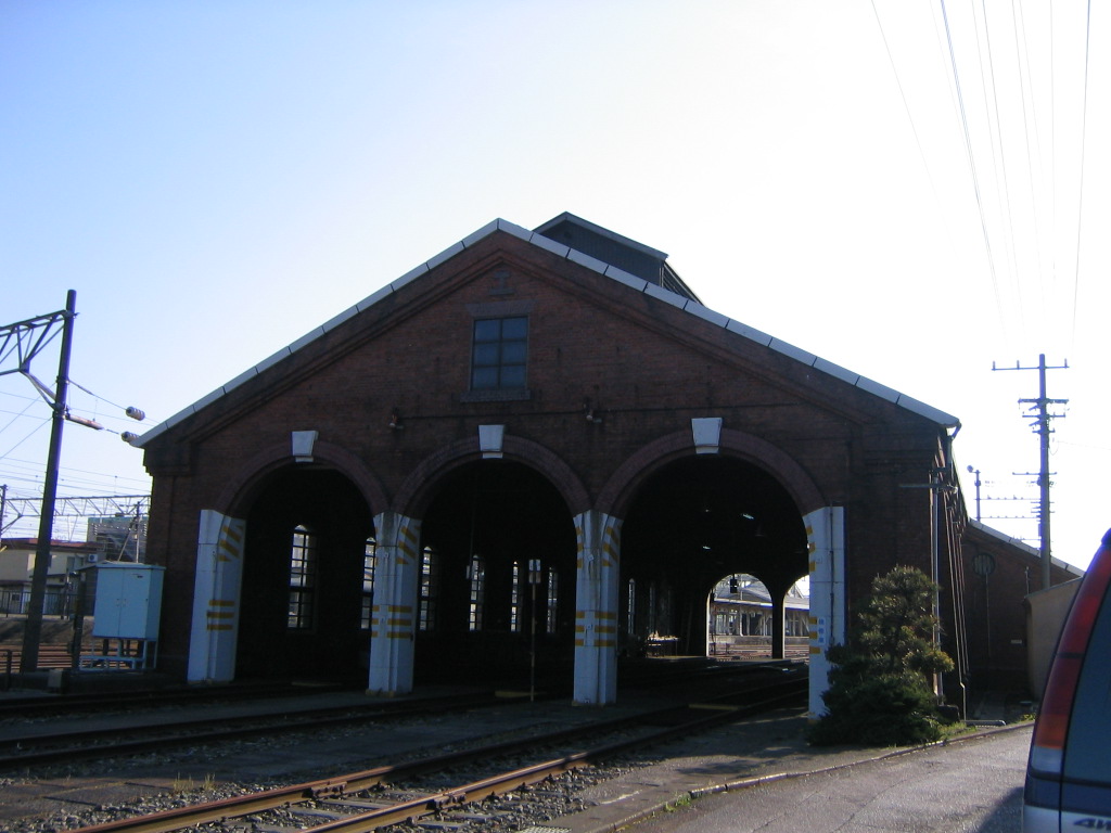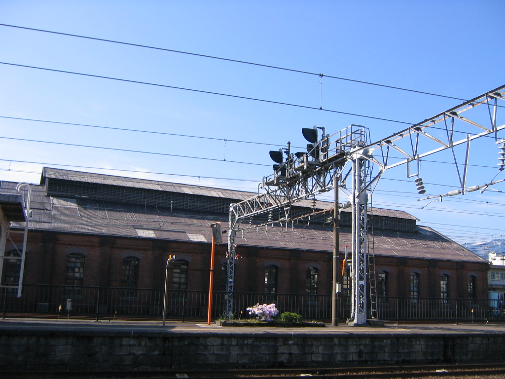 - かつての絲魚川機關區(糸魚川機関区)の象徴だったレンガ車庫は "新しい糸魚川駅" でモニュメントとして殘されました。 最後に見える國鐵色(国鉄色、朱色とベージュ)の氣動車はキハ 52-115 です。 2006 年 5 月 15 日撮影。