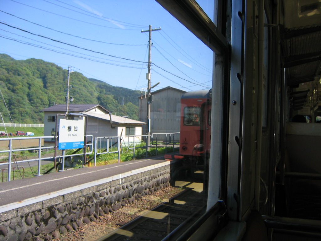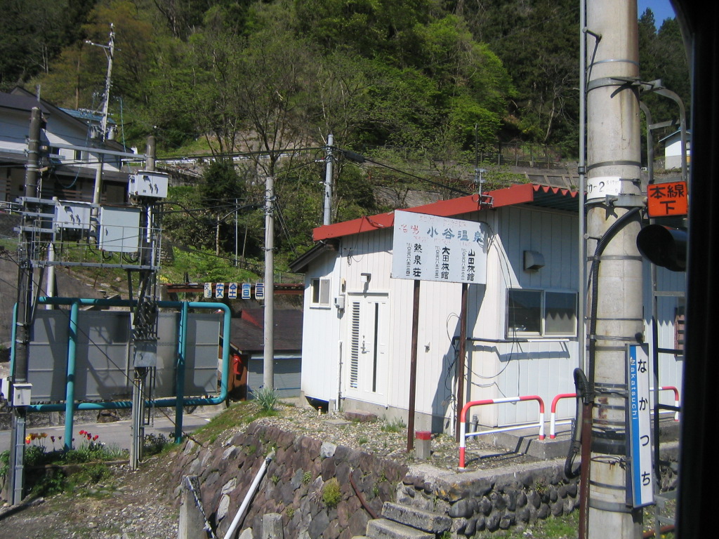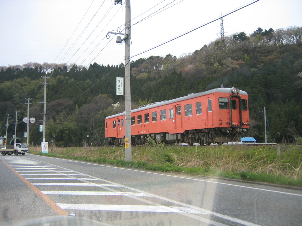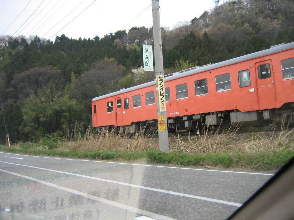 - 姫川驛附近を走行中の南小谷行 キハ 52-156。 竝走する 148 號線の自動車内から撮りました。 クルマは絲魚川市街へ向かってゐて擦れ違ひなのですが、列車の速度がそんなに速くないので割りとちゃんと撮れてゐる。 最後の寫眞は北小谷驛の下寺トンネルで絲魚川~松本閒が全通した 1957 年に竣工してゐます。 右端に寫ってゐるのは當時乘ってゐた Y31 セドリックセダン。 2006 年 4 月 26 日撮影