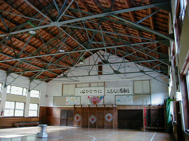 - 外觀は木造ですが、構造は鐵骨で支へてゐるのがよく判ります。 主な學校行事や冬季の體育の授業には缺かせない場所だったと思ひます。 佇んでゐると何やら子供の歡聲が聞こえてくるやうな錯覺におそはれる。 體育館は當面取り壞されないらしい。 個人的には祖父の形見ですから末永く このままで……。