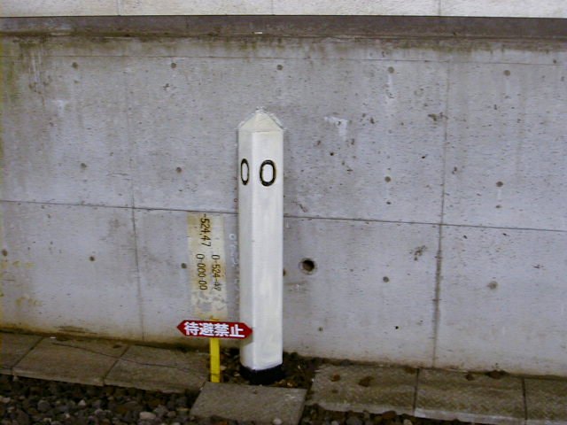 距離標は驛などに設置してあります。 距離がゼロといふと起點ですが、そんなに珍しくありません。 例へば東海道本線の起點である東京驛にもゼロの距離標があります。 地元 JR 大阪環狀線 福島驛には「 1 」の距離標があります。 これは大阪驛から 1km の地點を表してゐます。 そんなありふれた距離標ですが、塩尻※驛は少し變ってゐます。