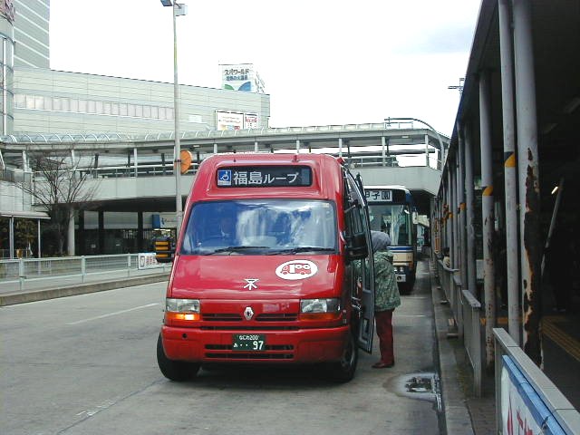 - 今年( 2002 年)に新設された「赤バス」は、シティコミューター的な目的で區内を巡囘する小型乘合バスです。 運賃は一囘乘車につき 100 圓。 しかも從來バス路線との乘り繼ぎには割引券󠄁を呉れます。 デイタイムのみの運行ですが、ちょっとした福島區ツアーに出掛けてみませう。 僅か 20 分ほどの旅です。