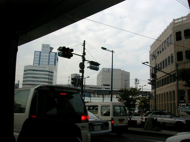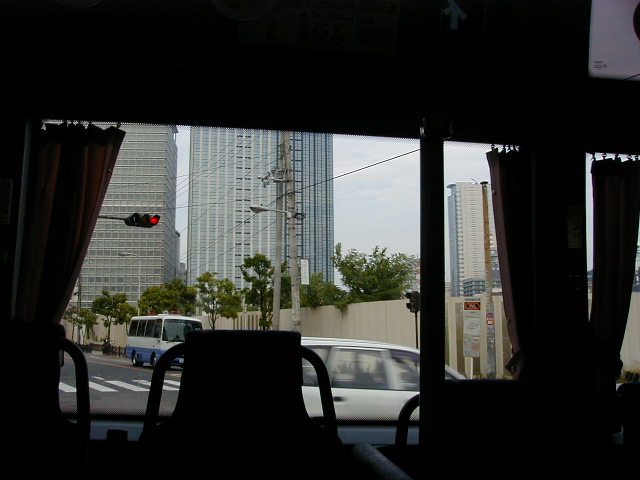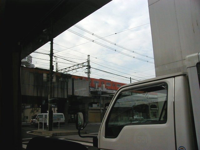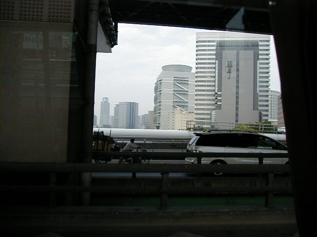 - 國道 2 號線 淨正橋交叉點を中之島方面へ右折中。 道は「なにわ筋」で向かふに JR 環狀線 福島驛が見えるのですが、阪神高速 池田線のほうが目立ってゐます。 右側のホテル阪神は大きすぎて窗からではサッパリわかりません。 壁だけが寫ってゐます。