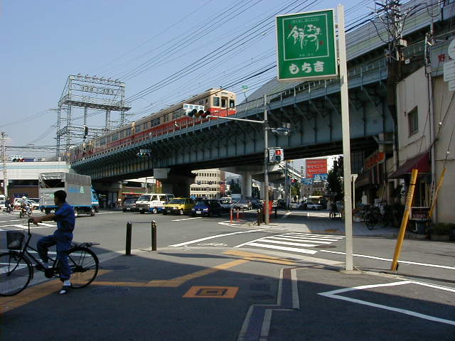 - 阪神 野田驛が髙架になる前は西側の國道 2 號線(阪神国道)の部分は大きな蹈切でした。 道の中央邊りで遮斷機が二分割になってゐて、そこに火の見櫓のやうな蹈切番の小屋(ボックス)がありました。 當時は阪神間を結ぶ道路が少ない爲に阪神国道の通行量は多く、また福島區の人口も今より多かったので上りは新淀川を跨いで歌島橋から、下りは梅田から大澁滯といふ狀態でした。 皮肉な事に蹈切が長く閉まってゐるので阪神 国道線や北大阪線はスムーズに發車する事が出來ました。