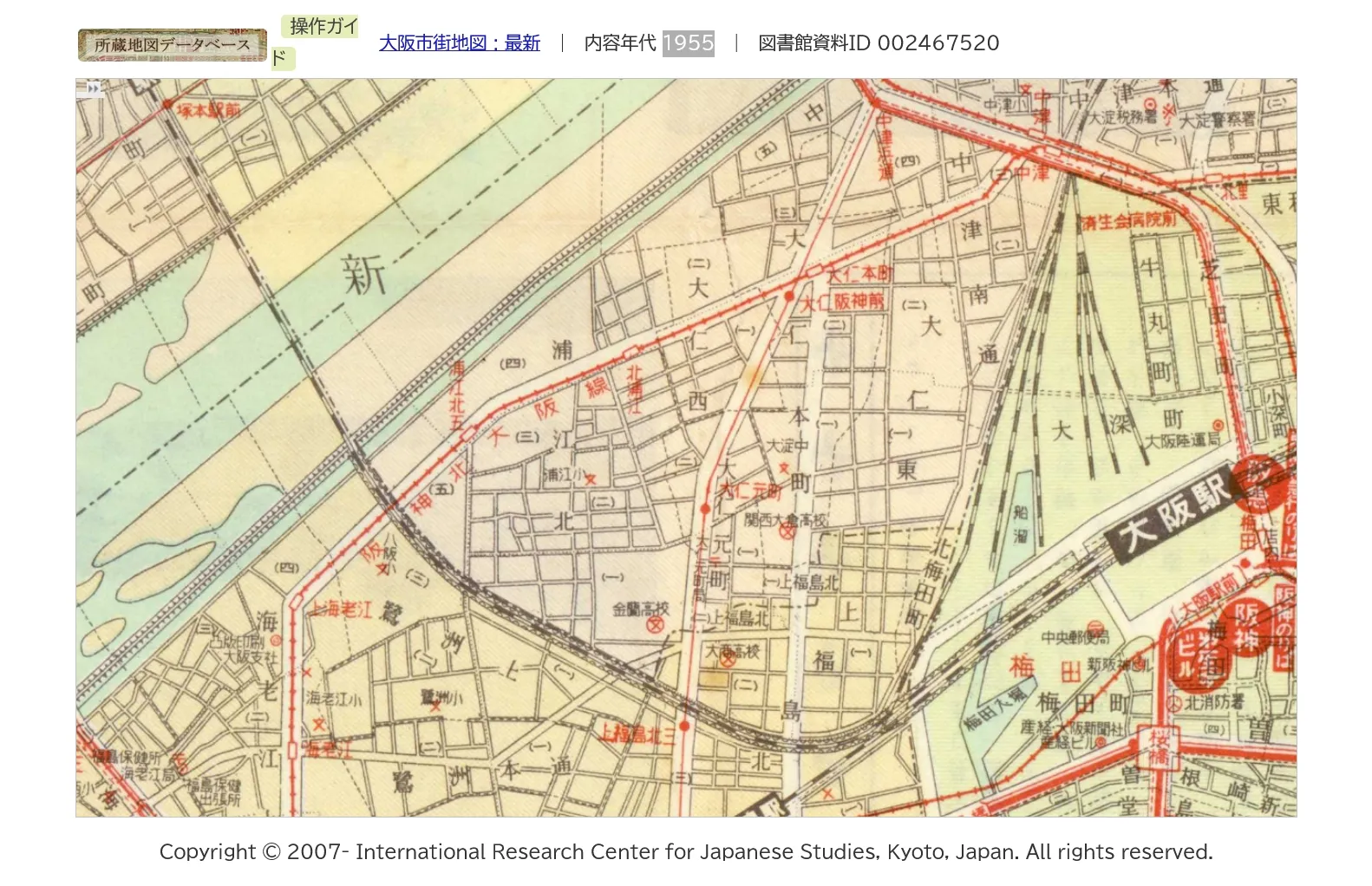 - 昭和 30 年頃の阪神 野田~中津の停畱所。 年代により增減します。 昭和 30 年の地圖(出典: 国際日本文化研究センター)
